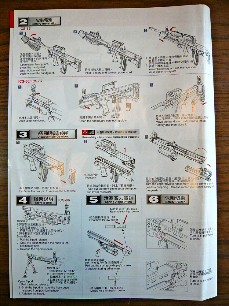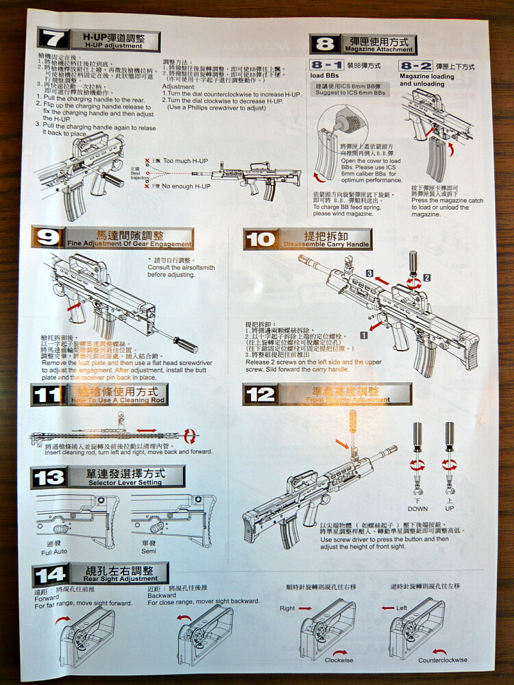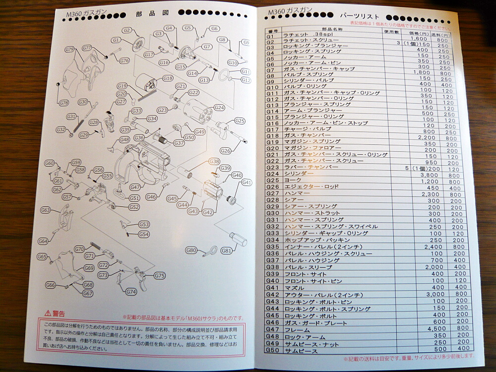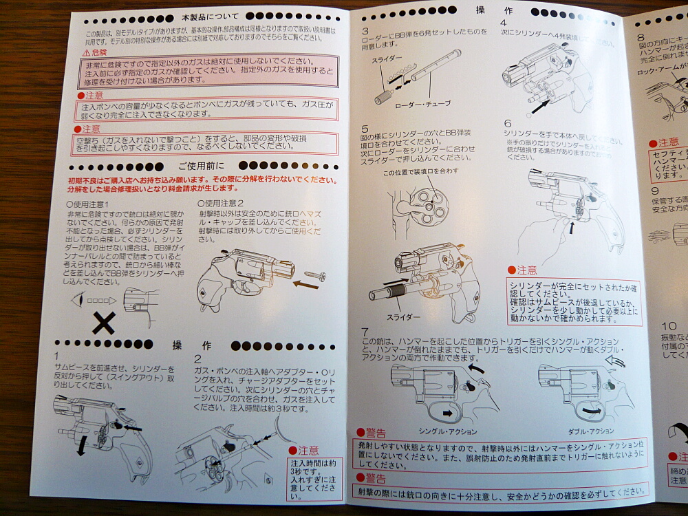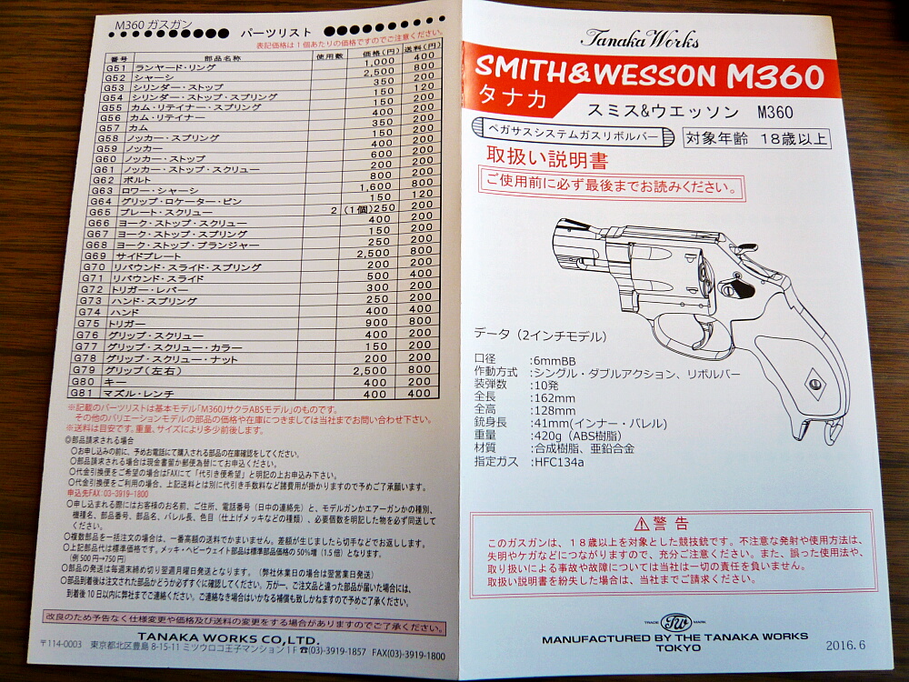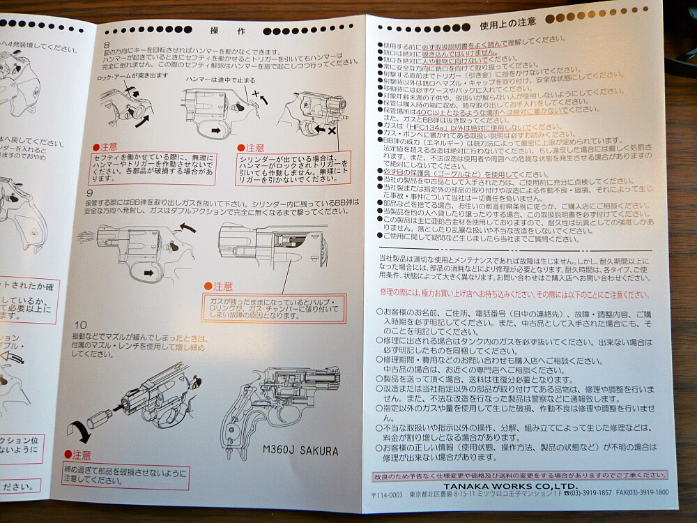 説明書は横長な一枚紙を4つ折りにしたもの。タナカの銃は操作が独特なところが多いのでよく目を通しておきます。