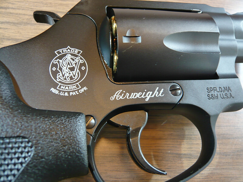 フレーム右面。スミス&ウェッソンのトレードマーク、「Airweight」の文字が印刷されています。