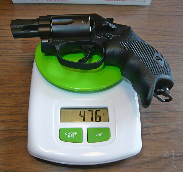 そうそう重量は476g。実銃は419gなので弾薬フルロード状態だと思いましょう。あまり軽いとオモチャっぽくなりがちですが、これくらいが程良くて好み。