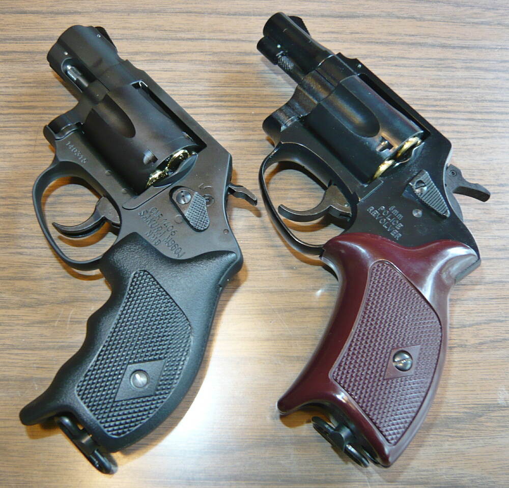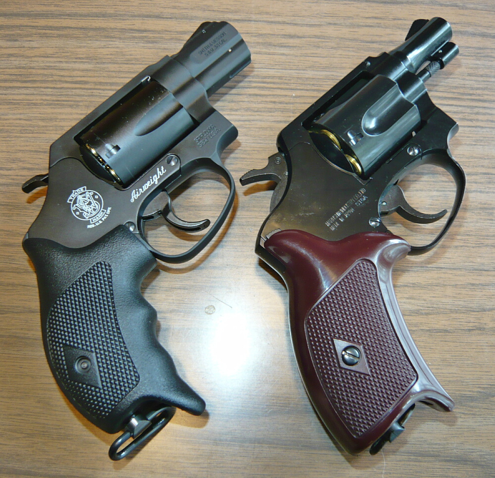 グリップはどちらも小指が余らず良好なのですが個人的には太めなポリスリボルバーの方が好み…M360Jもこちらだけを持っていれば比較せず満足なのでしょうが、やはりポリスリボルバーにあってM360Jには無い部分もあり、一長一短。