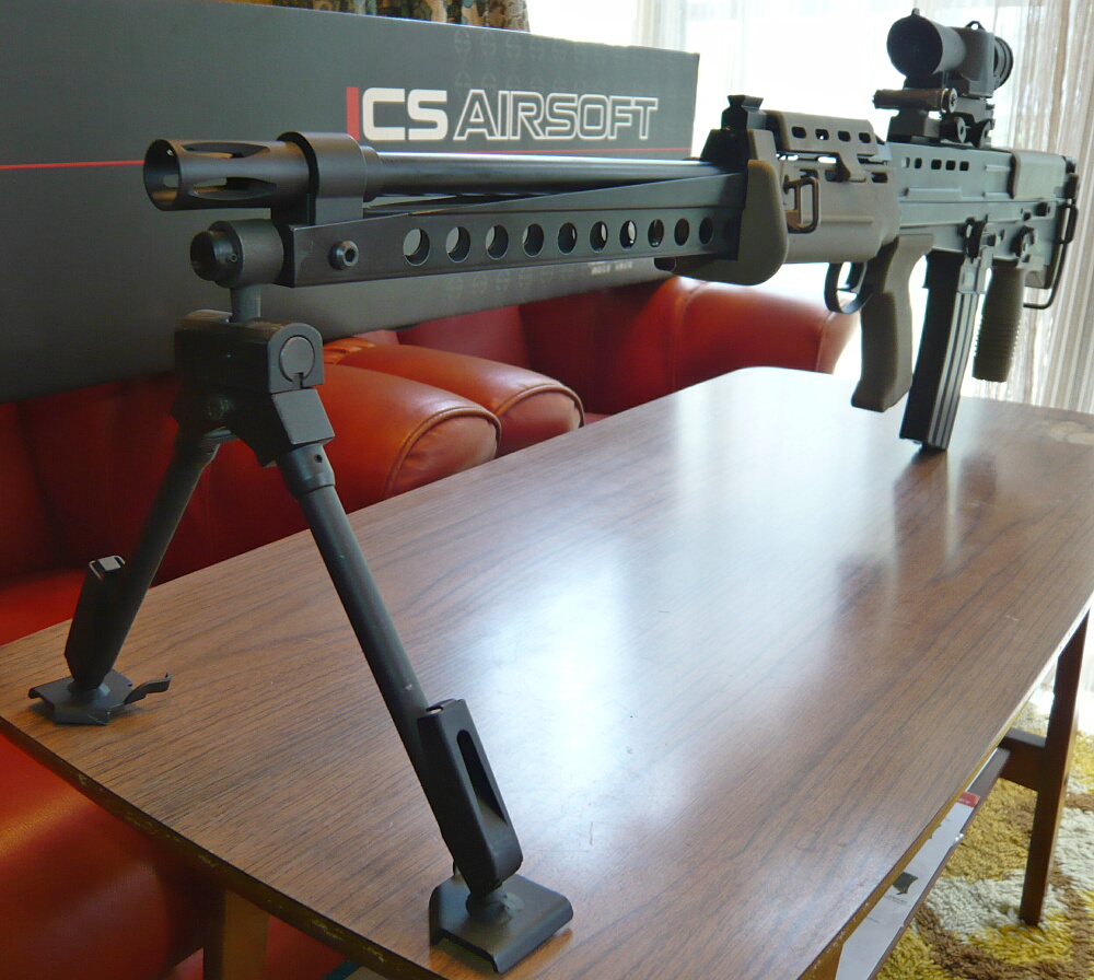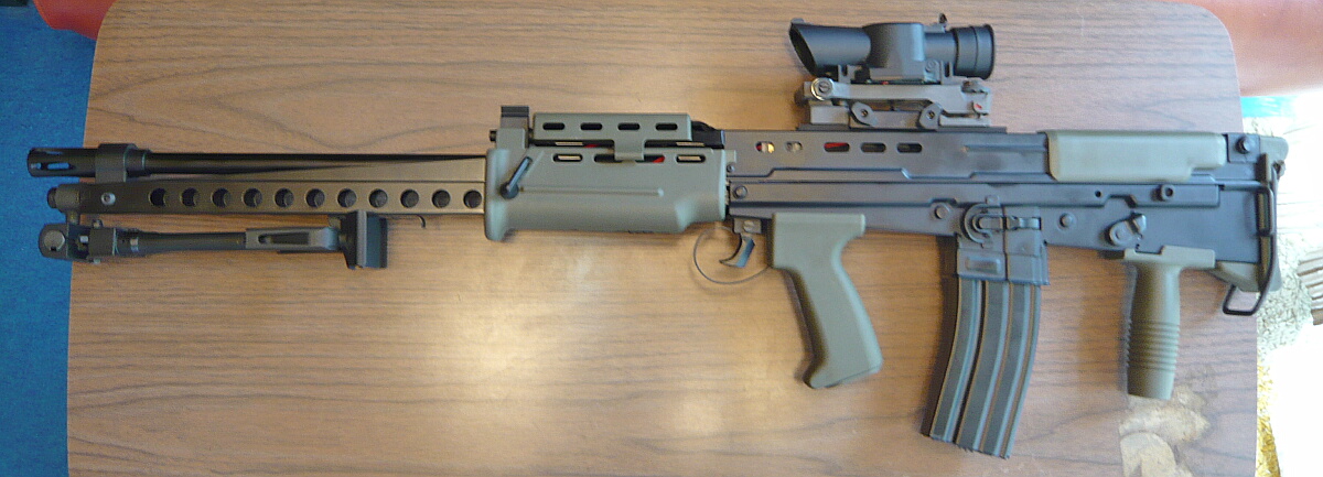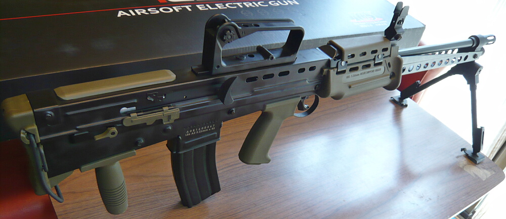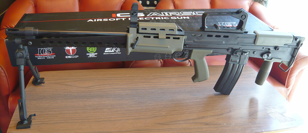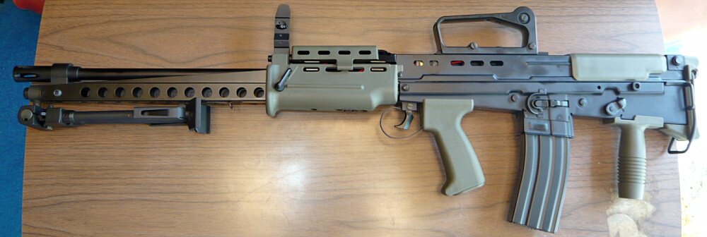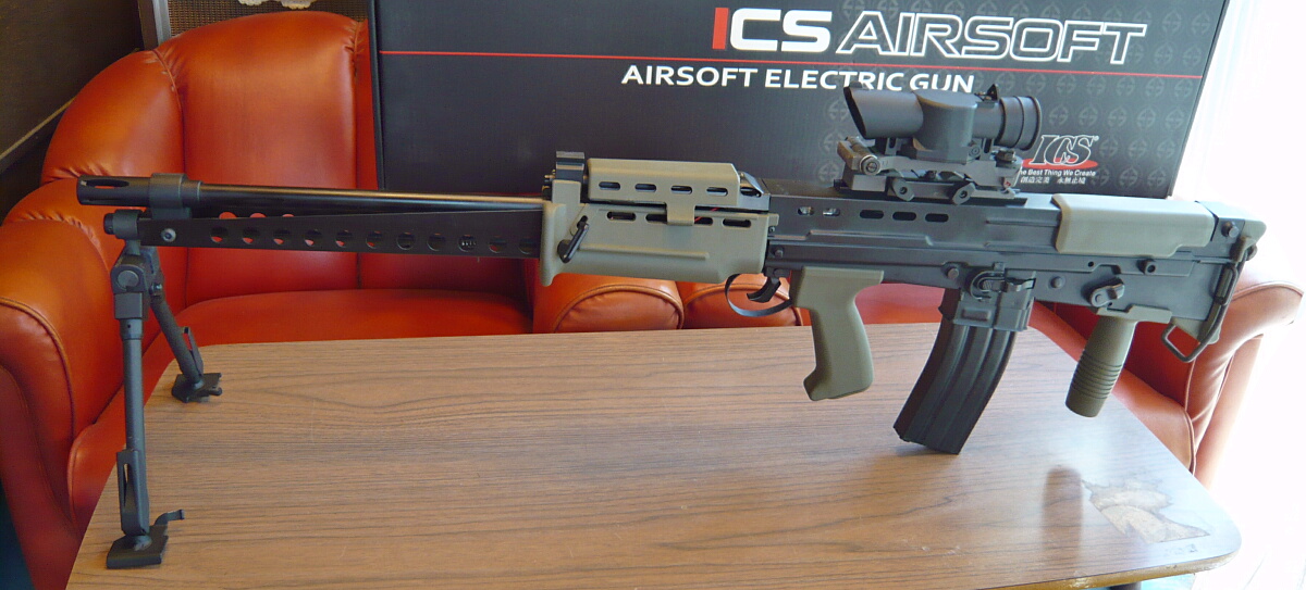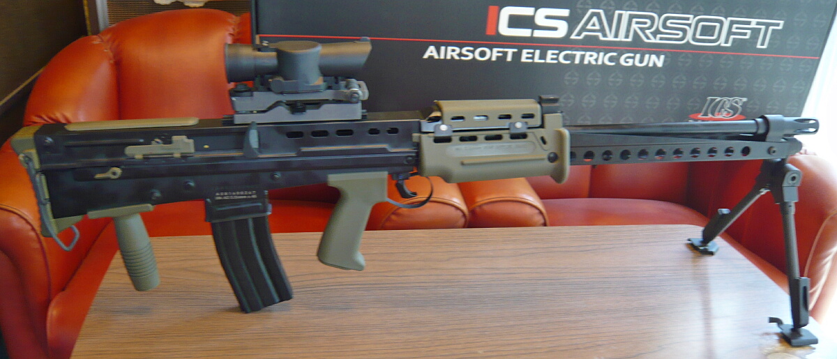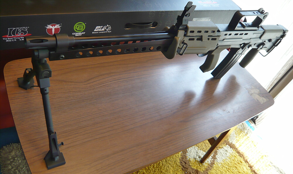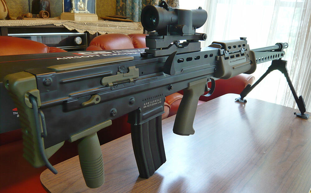 L86A2はイギリス軍の制式小銃であるL85A2の軽機関銃仕様であり、L86 LSWとも呼ばれます。位置づけとしてはAK47に対するRPKのようなもので、L85に対し長い銃身とバイポッドを持ちます。私がこの銃の存在を知ったのは昔トイガンにハマっていた頃に雑誌の広告で見たKSKのガスガンでした。それから10年ほどしてガンプラを多く組んでた時にマスターグレードのジム改だったかに付属したジムライフルの長いやつがこれにそっくりだった記憶があります。かつてはL85系列をラインナップしたメーカーは潰れる、なんて事もいわれていましたが海外メーカーではG&GやARES、ICSなどがラインナップしていて別にメーカーが傾いたりはしていません。