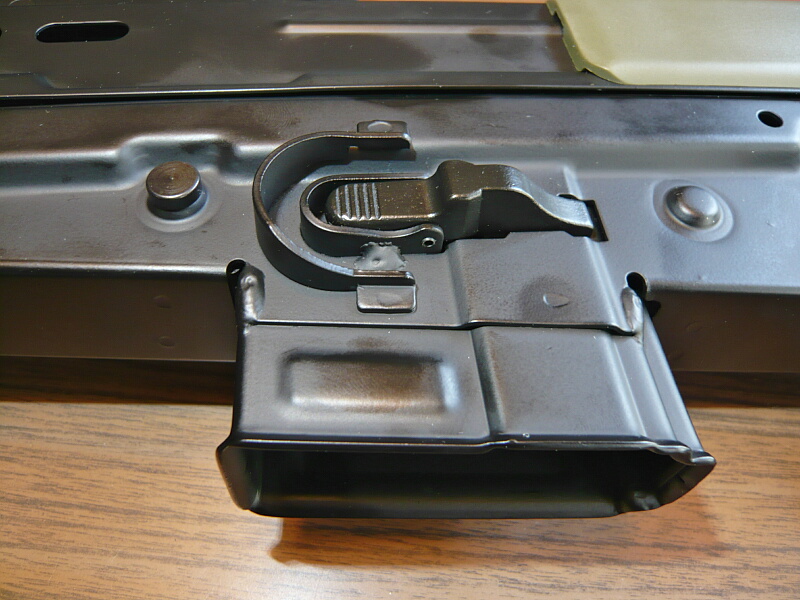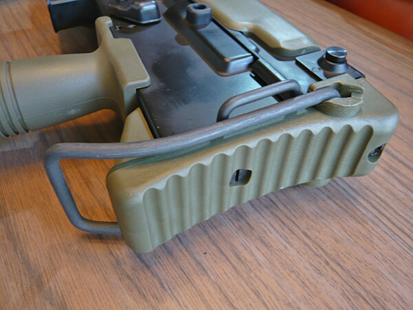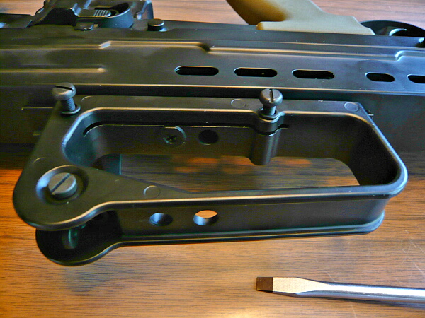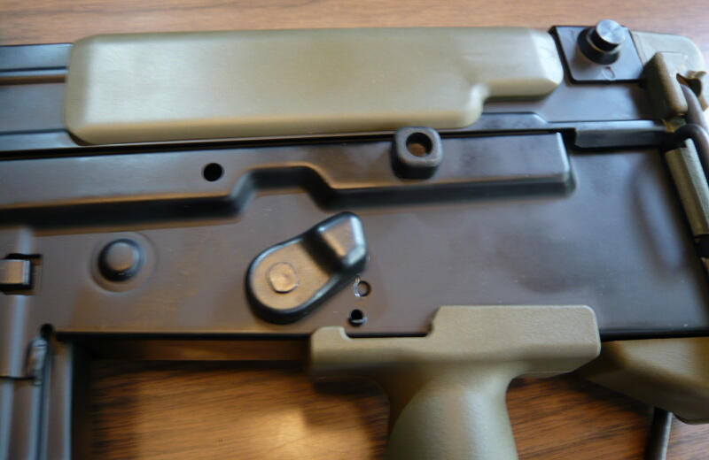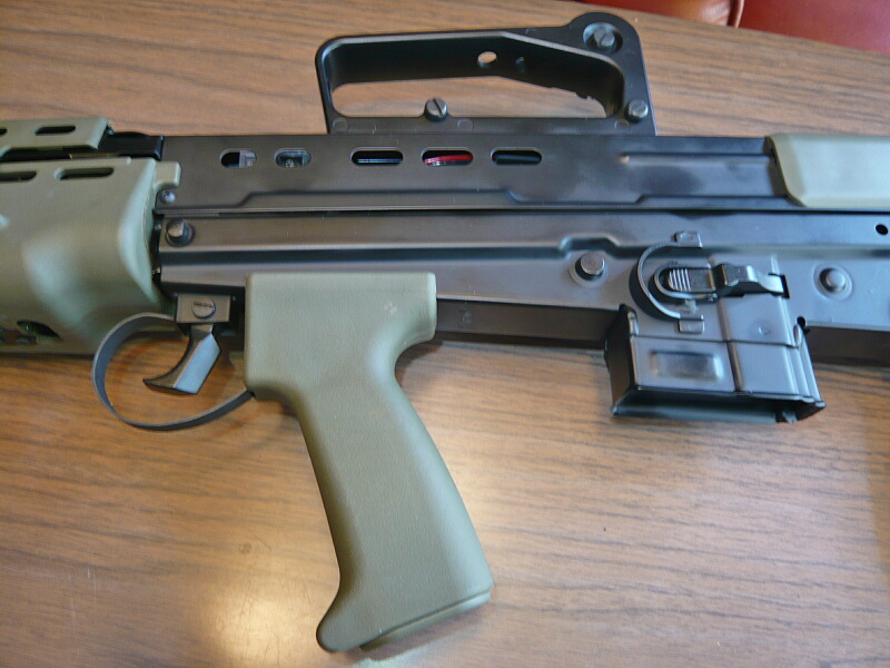 レシーバー。ブルパップ銃なので機関部はグリップよりも後方のストック内にあり、マガジンはグリップより後ろに刺さります。