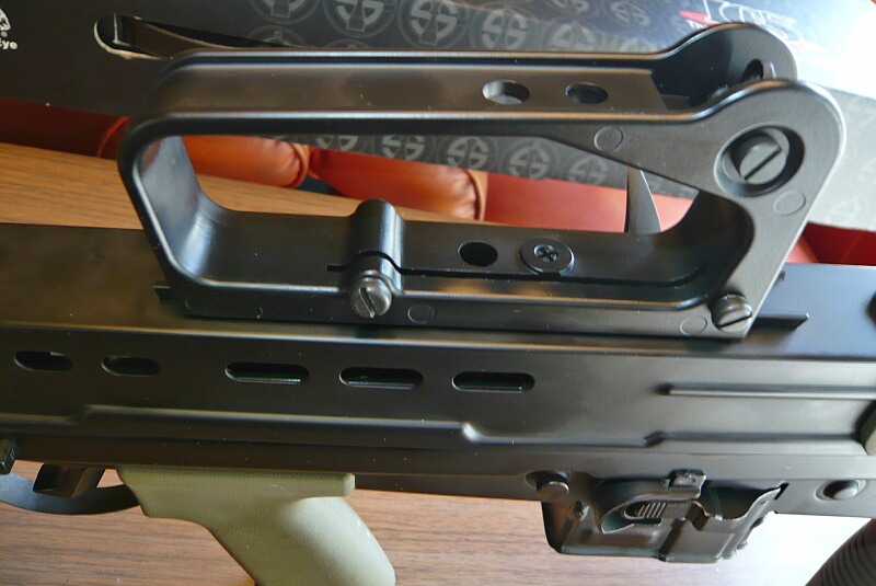 レシーバーの上面にはリヤサイトを兼ねたキャリーハンドルが装着されています。