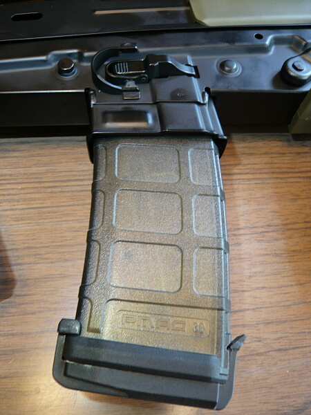 マガジンを銃に装着。カチリと装着され、ガタはほとんどありません。
