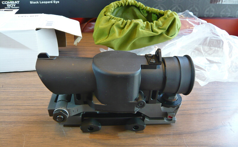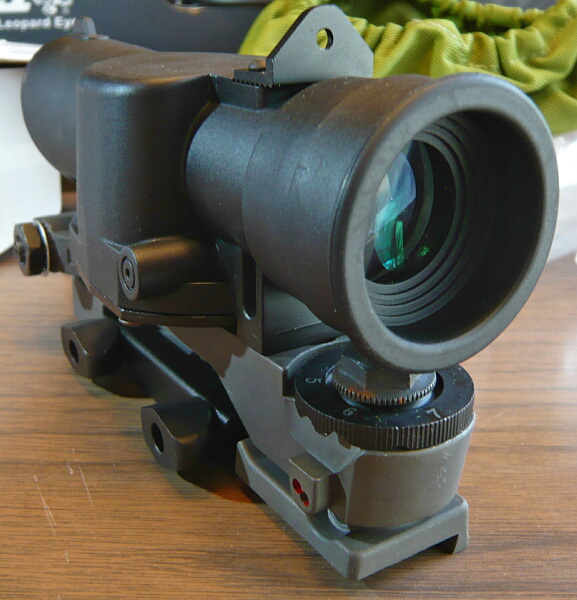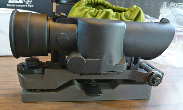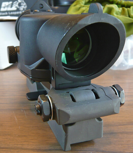 スコープとしての機能は4倍固定のショートスコープで、レティクルの調整は台座に対しスコープのチューブをピッチング/ヨーイングさせて調整します。その調整のために台座部分がこのようにゴッツくなっています。