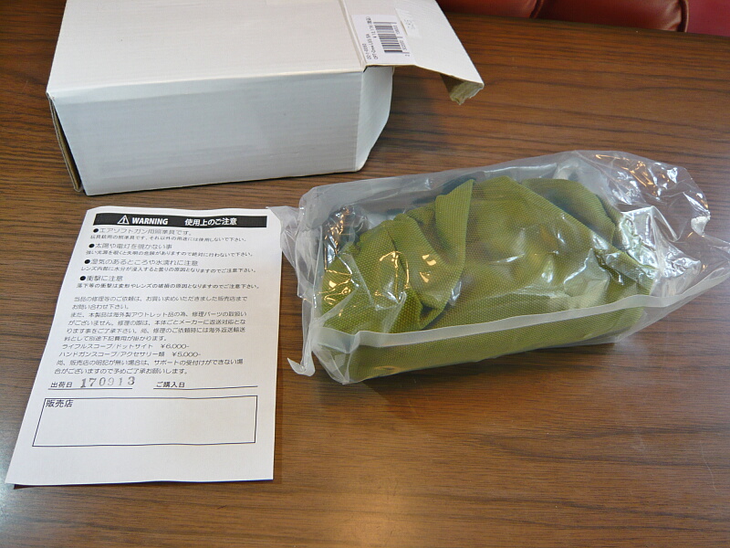 開封。説明書ではなく購入に際しての簡単な注意書き一枚と、ブツは袋が二重に被せられ更に布の帽子?が被せられています。