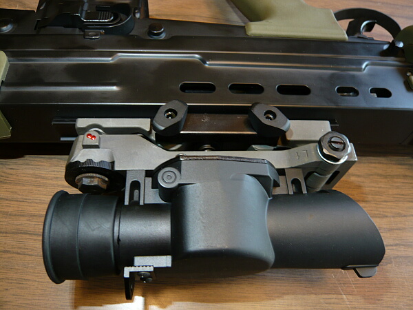 あとこのPSO-1に限った事ではないのですが、ドラグノフのサイドマウントというやつは銃ごとに個体差があって、締め具合を調整するQDマウントは銃ごとに取り付ける際に調整しなければなりません。これがまた面倒臭い。他に持ってるサイドマウント付きはA&KのSVD-SとE&LのAK74Nを持っていますが、それらはもうレイルマウントを装着済み。ただしあちらをこの銃に付けるのにいちいち調整してまた戻す時に調整して、という事をやりたくありません。