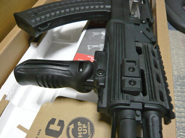 グリップはFN SAWタイプとも呼ばれるM249MINIMIやFNCなどのものと似た形で、AKのグリップとはかなり見た目も握り心地も違います。