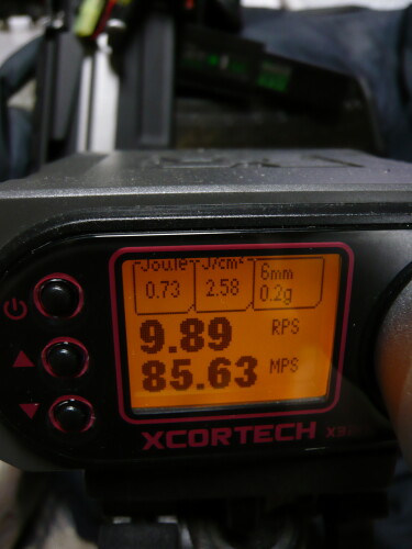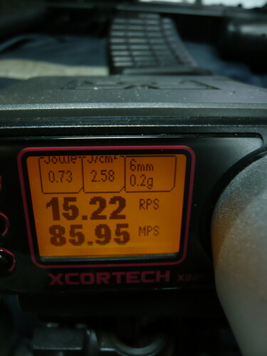 8.4v2300mAh(G&P GP552)での計測。初速はマルイのスタンダード電動M4と同程度かな?サイクルも割りと普通です。