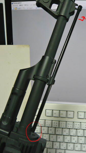 おっともう一個、このパーツを抜くとレシーバーとメカボックスの結合が解除されます。