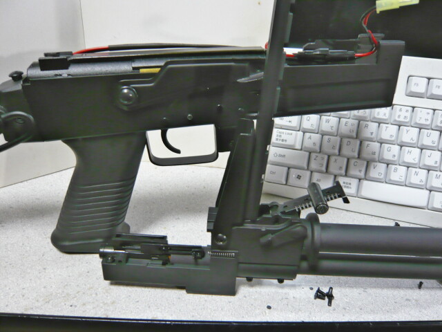レシーバーとバレルアセンブリが分離できました。構造的にはマルイのAK47と大体同じらしい・・・
