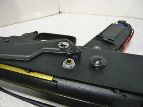 抜けました。手で引っ張ると手を切る危険があるので前端をペンチでつかんで引っこ抜くのが良いでしょう。メカボックス上面の接合をネジの代わりにこのプレートで留めているのでそれなりに力が要ります。メカボックスをふっ飛ばさない注意。