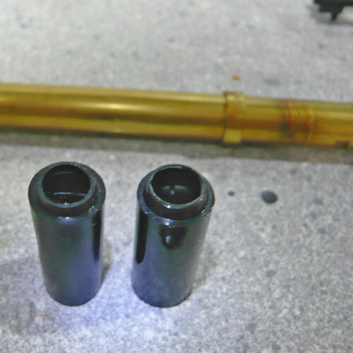 インナーバレルからチャンバーパッキンを外しました。右がこの銃に付いていたもの。左はS&Tタボールに付いていたもので、どちらもマルイ互換。タボールのように弾こぼれはしないのでこれはまあこのまま使ってもいいかな・・・でもCM.039Cでは無いのですがCYMAのAKはチャンバーパッキンを短くぶった切って組んで初速を落とすデチューンをされている固体もあるようなのでここは必ずチェックしておいた方が良いでしょう。