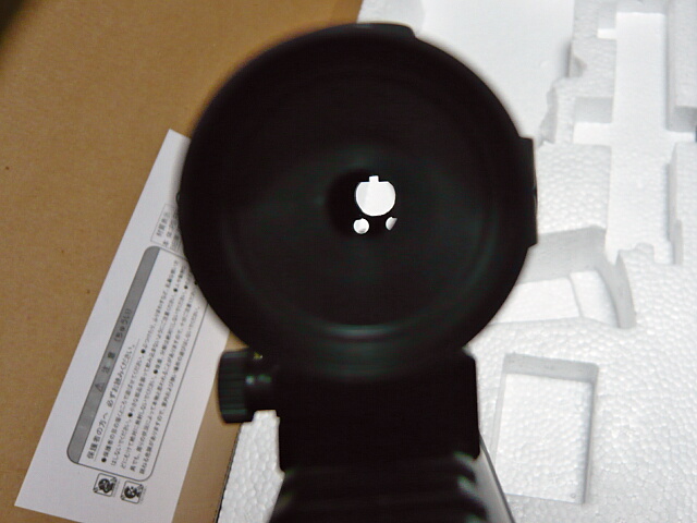 スコープは左側にネジがあり一応しっかりと固定できます。ただの筒なので接眼側と対物側に開いている小さな穴を前後重ねてサイトとして使用できなくはないですが、銃本体の固定サイトを使用した方が確実でしょう。銃上面にはレイルがあるのでドットサイトを載せることも可能。