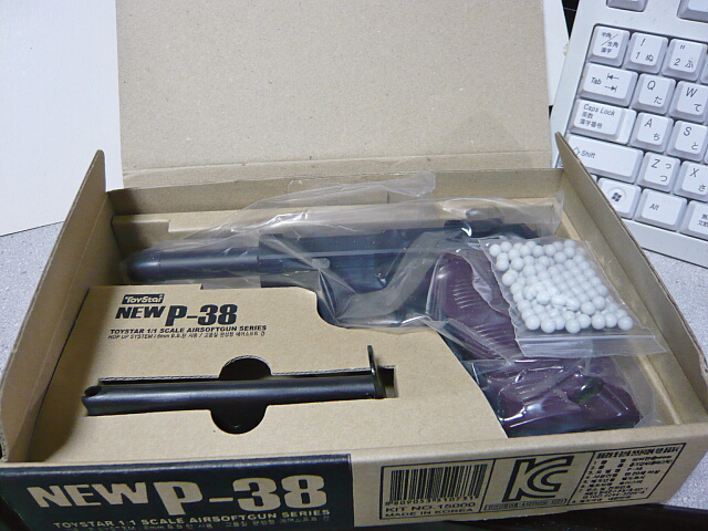 価格は2200円でした。このくらいの値段のP38のエアコキといえばマルイのエアコキハンドガンシリーズのものがありますが、いかんせん昭和の時代からあるブツで入手性も容易な現行商品とはいえやはり陳腐化は否めません。その一方でこのトイスターのP38は割りと新しい造りなので、まああまり興味の無い銃だったのですが何となく買っておきました。