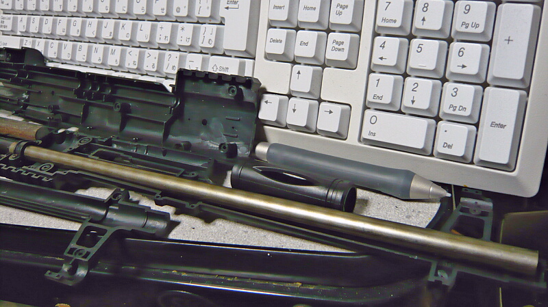 インナーバレルは前半がプラ製、後半がアルミ製。黄河ドラグノフと違いインナーバレルはあまりしっかり固定されていないのですが、まああまり問題にはならないかな?