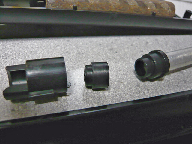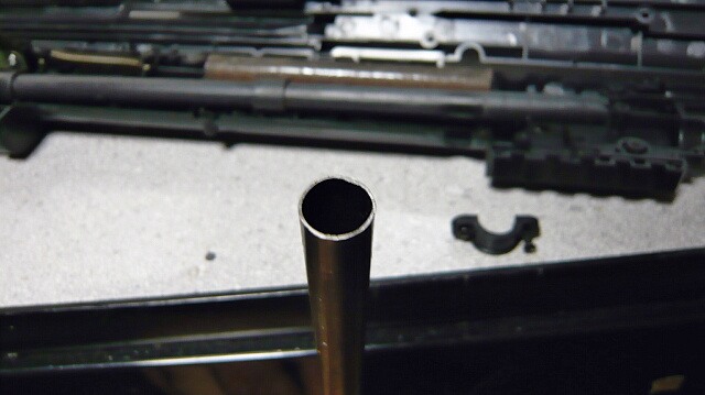 それも鉄板を丸めて溶接してある精度を云々するようなもんではないブツ。端の処理も内側へ返っている部分もあるので削ってやりましょう。アルミや真鍮の長いインナーバレルを酔狂で入れた場合には補強として役に立ちそうです。なにしろアウターが細長~いので・・・