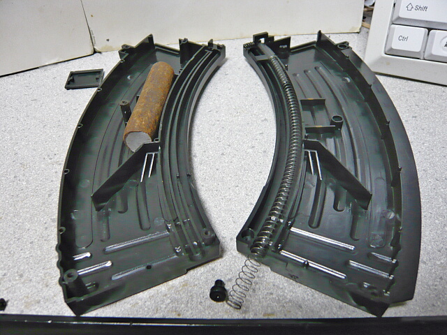 マガジンもバラします。リザーブはマガジンの空きスペースを全て使う豪快な仕様。でも錆鉄棒も同じ部屋にあるので弾が汚れそうです・・・