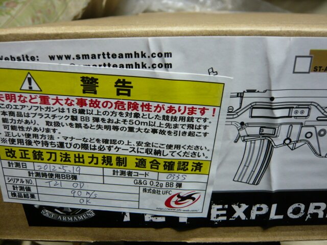 物々しいシールが貼ってありました。最近あちら(中国)ではトイガンがらみのトラブルがあったらしく、規制が厳しくなっている模様。世知辛いですね。