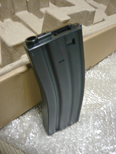 付属のマガジンはまんまマルイのスタンダード電動M4系の多弾マガジンです。色もほぼ同じ。