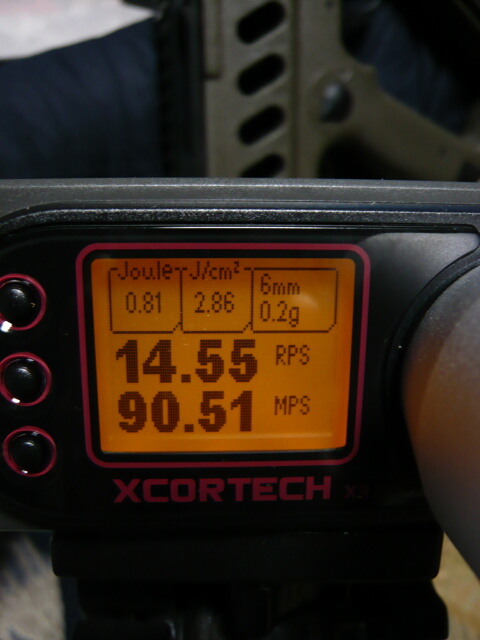 9.6Vだと秒間14.55発と出ました。感覚的にもマルイの電動ガンと似たサイクルになります。