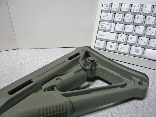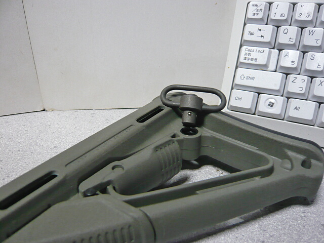 というかウチにある銃でQDスイベル穴があるのはこのCTRカービンストックだけ・・・上画像で示すようにバットプレートの内側にQDスイベル穴があります。左右どちらからでも使用でき、左右同時使用も可能なようです。