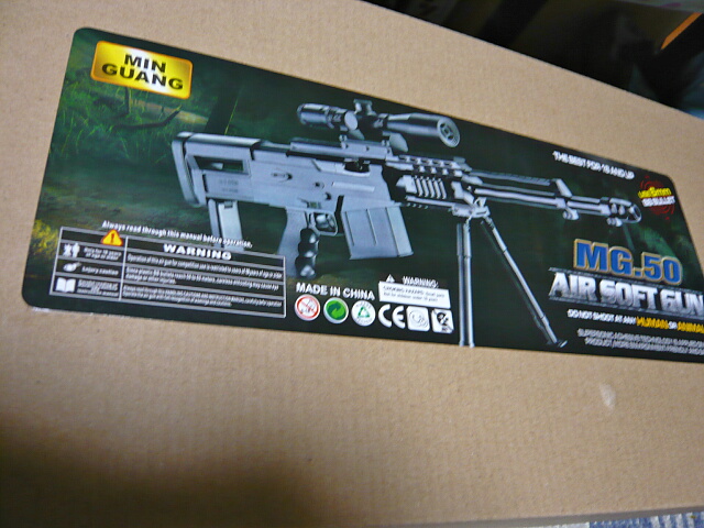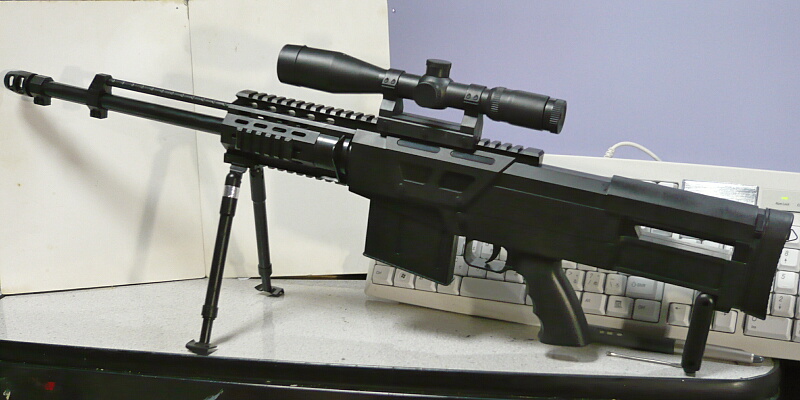 まず予備知識もなく見た目だけでカッコイイーとつい買ってしまったのですが、ググってみるとバレットM82などで有名な12.7mm.50BMG弾を使用する対物ライフルで、実銃は1.4mほどの大きさと14kgの重量があります。