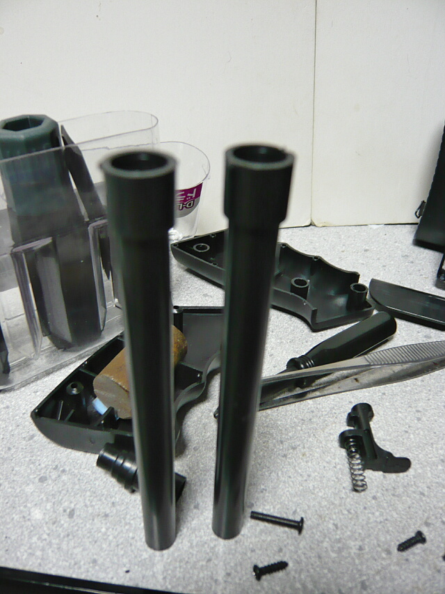 インナーバレル。これが1本チャンバーにささって機関部に挟まっていて、もう1本が銃前半に収まります。