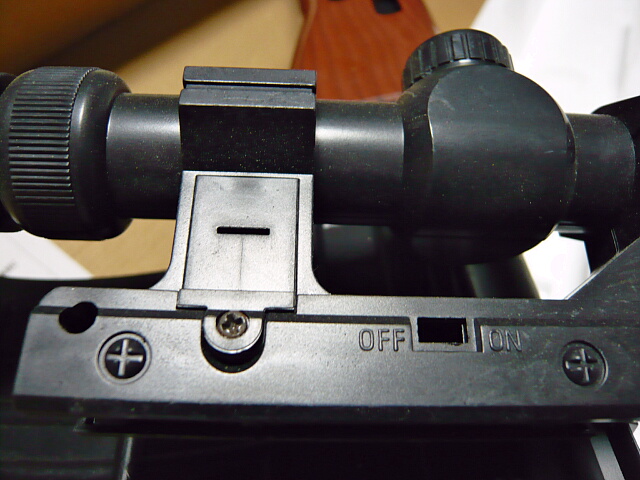 スコープはスイッチや電池ボックスのあった痕跡がありますが、レンズすら入っていないただの筒です。レイルへはただ差し込むだけで、ロックもネジも無し。