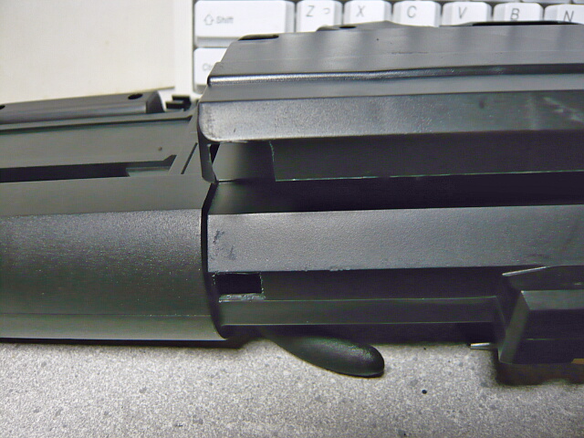 左側面。サイドロックマウントはモールドで機能は無し。トリガーは細くて華奢に見えますが割合剛性はあり引き心地も悪くは無いです。