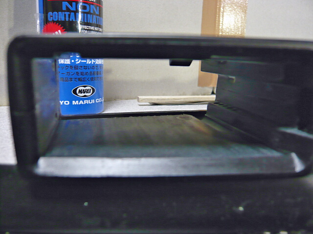 更にティッシュでゴシゴシ擦ってみるとツヤが増し、しまいには下地が・・・キャロムのチタニウムシルバーで塗装した上からパーカーシールを吹いて擦ったら面白いかもしれません。残念ながら単体ではブラックスチールほど塗膜が強くはありません・・・