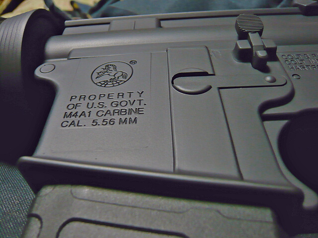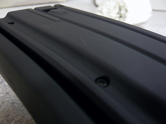 爪で引っかいて縦書きで「M4A1」と書いてあるのが見えるでしょうか。表面は引っかくと跡がつきまくりなので強烈なつや消しを綺麗に維持するのは非常に繊細な扱いを要します。