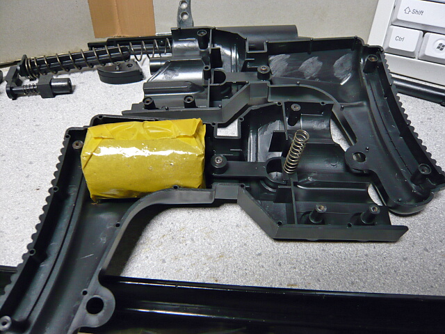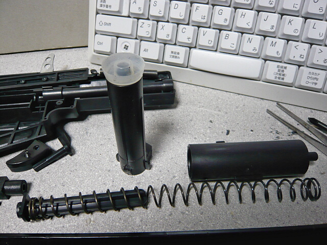 シアーの掛かりを浅くしたり、ピストンと掛かるところに注油したり。しかしどうしても組み上げるとシアーが切れてくれません。もう私のスキルではどうにもできません。お手上げです。
