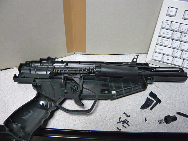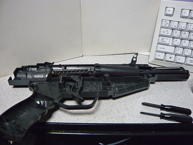 開いたレシーバーを眺め、トリガーやリンクをヒコヒコ動かしていると、何かもしかしてそこまでせんでも治る気がしてきました。
