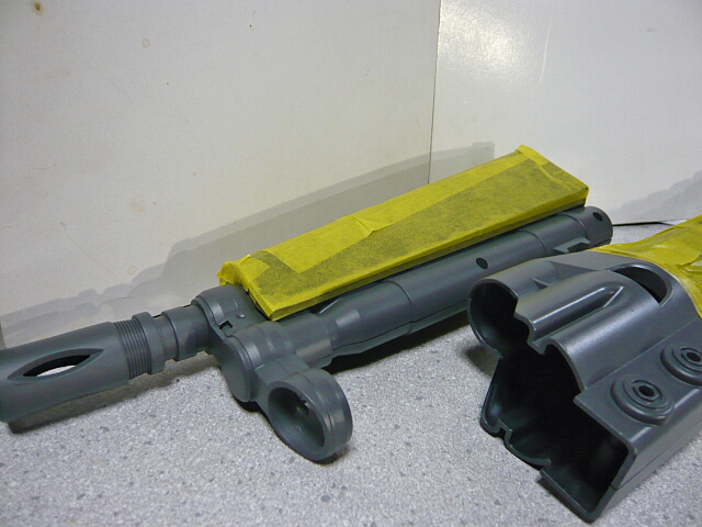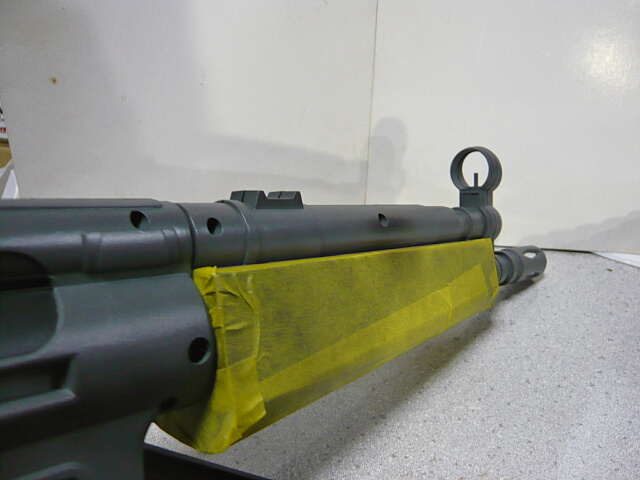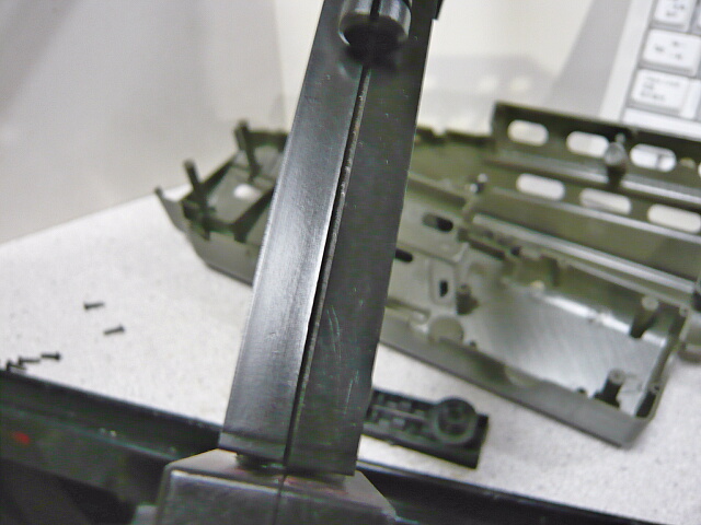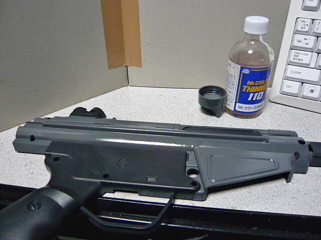 上面レイルは無塗装のままですがリヤサイトの前が塞がっているのを適宜に切り抜いて使えるようにしました。何でこんな簡単な事を金型の段階でしていないのか・・・