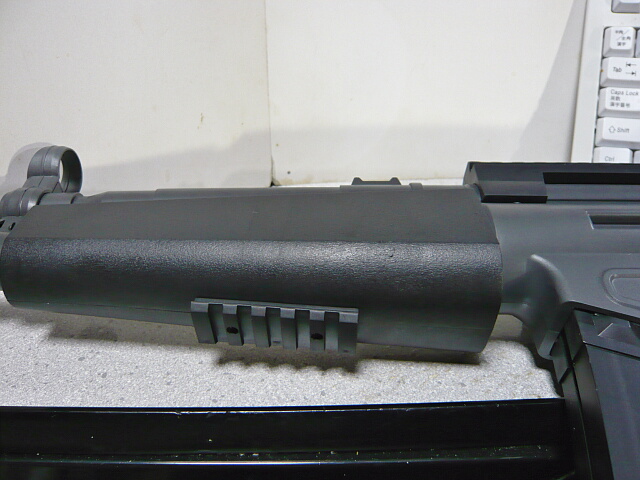 リヤサイト左側にある役に立っていないレイルをハンドガード下に移植。分割部分に付属のタッピングビスのまま刺しているので取り付けがヤワだしピッチング角がついてしまいますが気にしない気にしない。