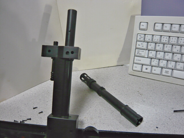 アウターバレルをバラすとまた中に錆鉄棒。インナーバレルは見ての通りフロントサイトの下から2cmほど先までしかありません。それでも結構な長さはあるのですが・・・