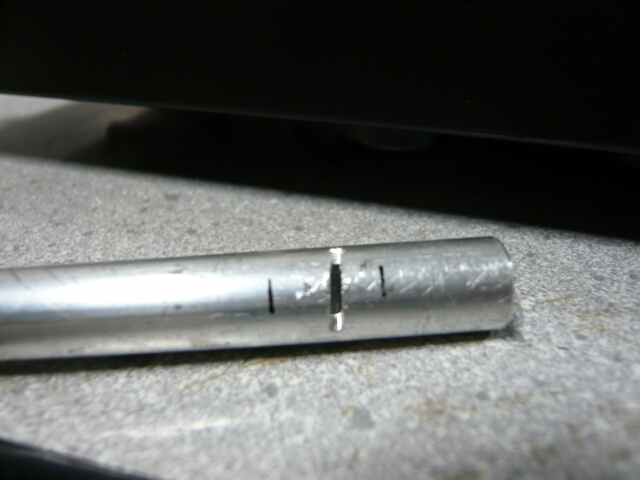 露出する部分の始めと終わりに印をつけ、その間に金ノコで切り込みを入れます。