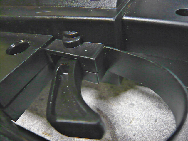トリガーが戻りきったところの位置決めはトリガー付け根の前側だけのようなのでここを削ってやるだけでいいのです。