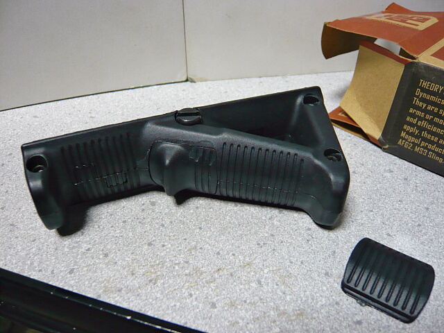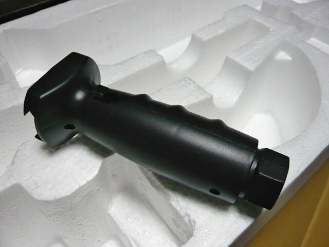 取り付け位置は好み次第ですが、格好的にはハンドガード前端とAFG2のハンドストップ部を揃えたいところです。握り心地はバーティカルフォアグリップが後ろへ傾いたような感じで、前にも申しましたが私はフォアグリップの付け根付近を薬指と小指で握り、残った指でハンドガードを握る持ち方なので違和感は無いハズなのですが、ちょっと慣れない感じ。何かこう、ハンドガードを普通に持ってるだけのような、フォアグリップの存在を意識しない握り心地。ですが無いよりは確実に銃を保持しやすく、しっかりとストックのバットプレートを肩へ押し付ける事ができます。装着時の格好が独特なのでどうだろう?と買うのを躊躇していましたがこれはこれで中々良いです。