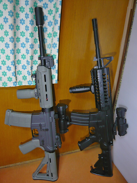 肉眼で見てもあまりツートーンという感じではなく、遠目には同じ色に見えてしまうかも。もっとこう、M4系やマルイの電動G3A4くらいハッキリと黒とグレーに出来たらな~・・・