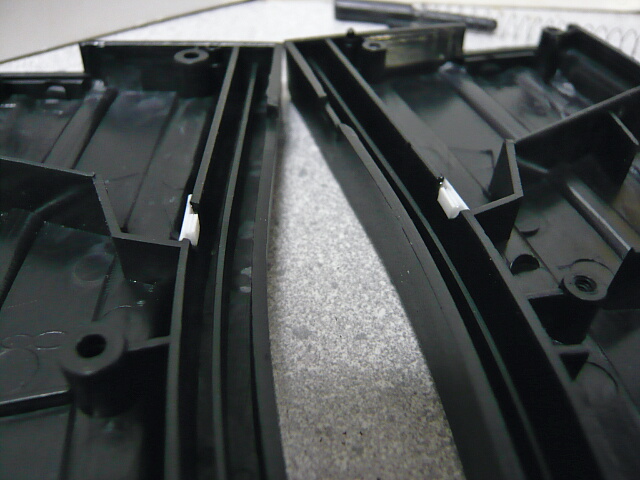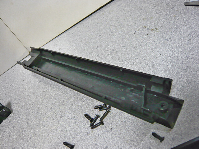 RASのレシーバー上に掛かる部分は別パーツで、前側はハンドガード部のモナカ左右に挟まって固定されていますが、後ろ側はネジの他はアッパーレイルへの掛かりが後端2箇所にちょっとあるだけ。しかも左右オフセットしています。もうちょっと掛かる位置が多ければ上に載せたドットサイトもガッチリするんですが・・・