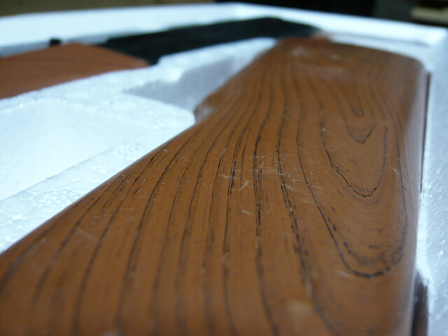 ストックやハンドガード、グリップは木目調。表面は煤けていて安いテーブルといった風合い。銃が銃なのでこれはこれで・・・