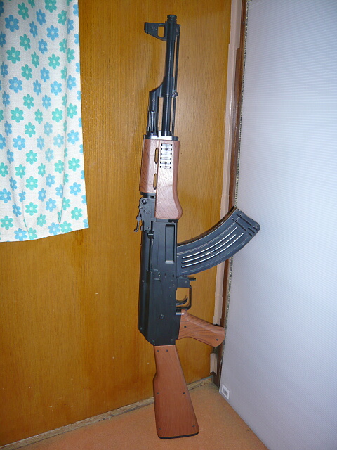 実射性能は何と言うかその・・・非常に普通であまりにも普通。コッキングは気持ち軽めで、パワーはそこそこ。固定ホップアップという事ですが弾道は0.2gBB弾ではすいーっとまっすぐ飛ぶのがよく見えるので一応は効いてる模様。強パワーノンホップだと弾道が見づらくどこに飛んでるかわからなかったりするし、その割りに飛距離が出てなかったりなのでこちらは撃っていて楽しいです。LSのAK74を撃っていた頃も思っていたのですが、AKという銃は何と言うかこう、構えると自然に銃と一体感が得られるような、そんなフィット感を感じます。