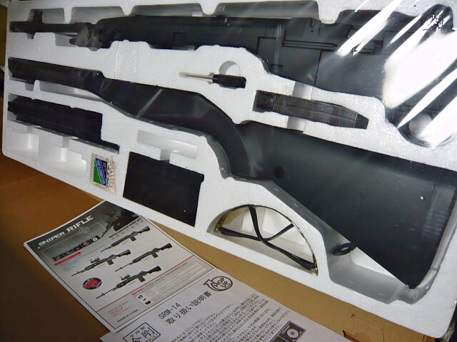 製品内容といえば、まあ上写真の通り。半組み立てなのはフルサイズM14のまま箱に入れられてもデカ過ぎて箱の処分に困るのでいいのですが、とにかくツッコミどころ満載でございます。