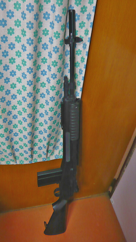 とりあえず素のM14の形に組みました。パッと見の形は結構イケてます。ただ長い、めっちゃ長い・・・