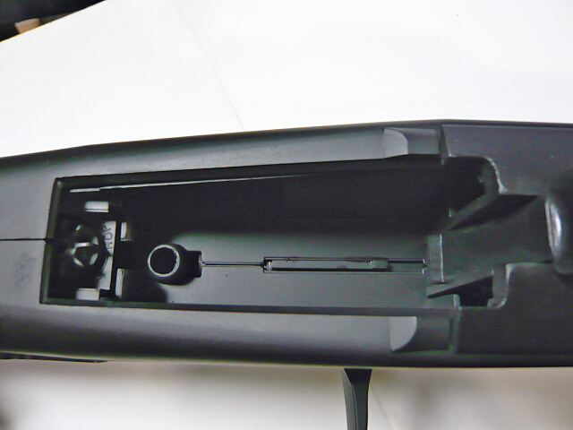 本来は単三電池2本とホロサイトの機構が収められているフタの中にきれいにミニバッテリーが収まります。配線は前端下から出します。前後方向へはギリギリなので9.6Vは入りません。