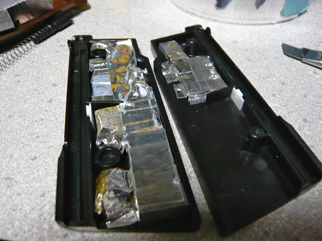 細かい鉛があったので隙間に詰めて更にアルミテープで固定。衝撃が入っても外れたりしないようしっかりと。
