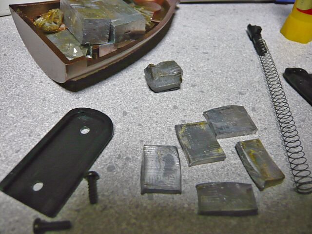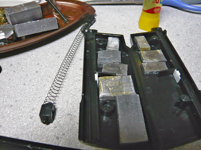 秘蔵の鉛ウェイト。昔持ってたエアコキ銃などに入っていたものをこんな事もあろうかと保存しておいたもの。壊れたトイガンは分解してウェイトは取っておくとこんな時役に立ちます。
