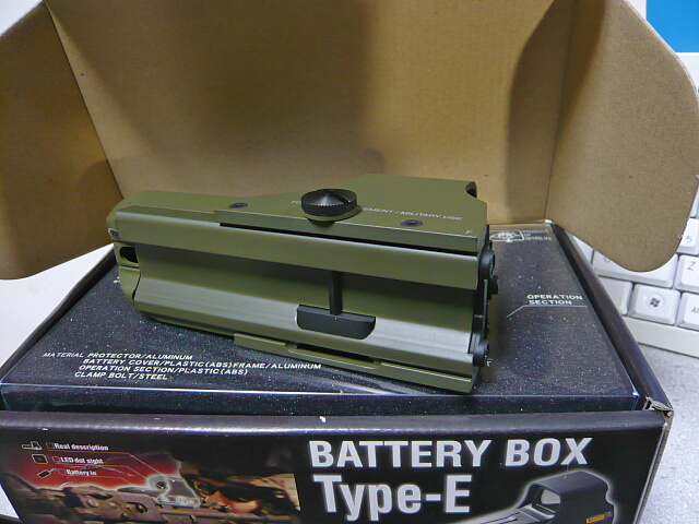 バッテリーケースとしては定価が1万5千円ほどとちょっとお高いですが今回6千円ほどで入手できたのは僥倖でございます。M4のRASの上にAN/PEQ-16タイプなどのバッテリーボックスを載せてて「邪魔だ!」という人にもオススメの一品。